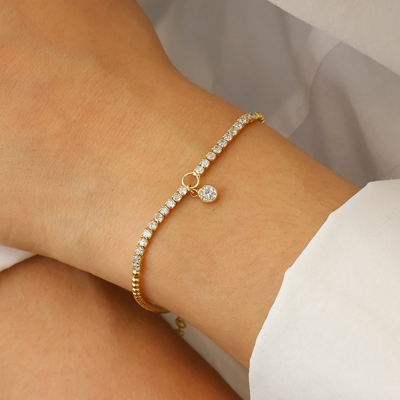 Avoid contact with perfumes, creams and water when possible to protect the plating on the jewelry. Gold plated jewelry should be gently cleaned with a soft polishing cloth.