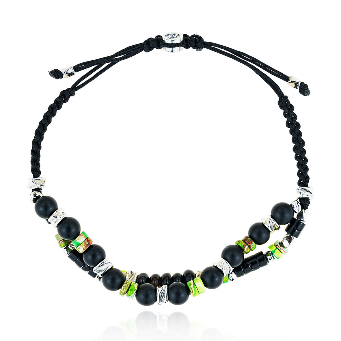 Bracelet silver 925 rhodium plated with onyx and cord