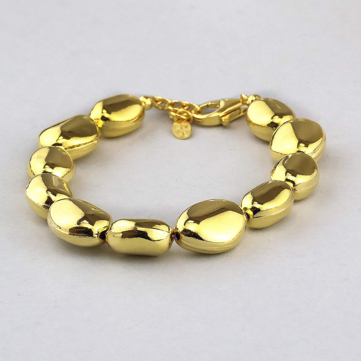 Avoid contact with perfumes, creams and water when possible to protect the plating on the jewelry. Gold plated jewelry should be gently cleaned with a soft polishing cloth.