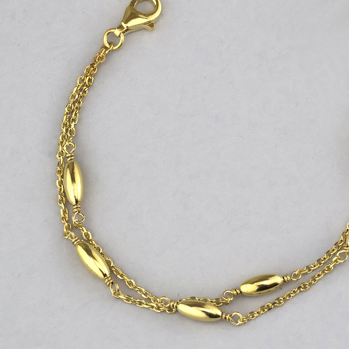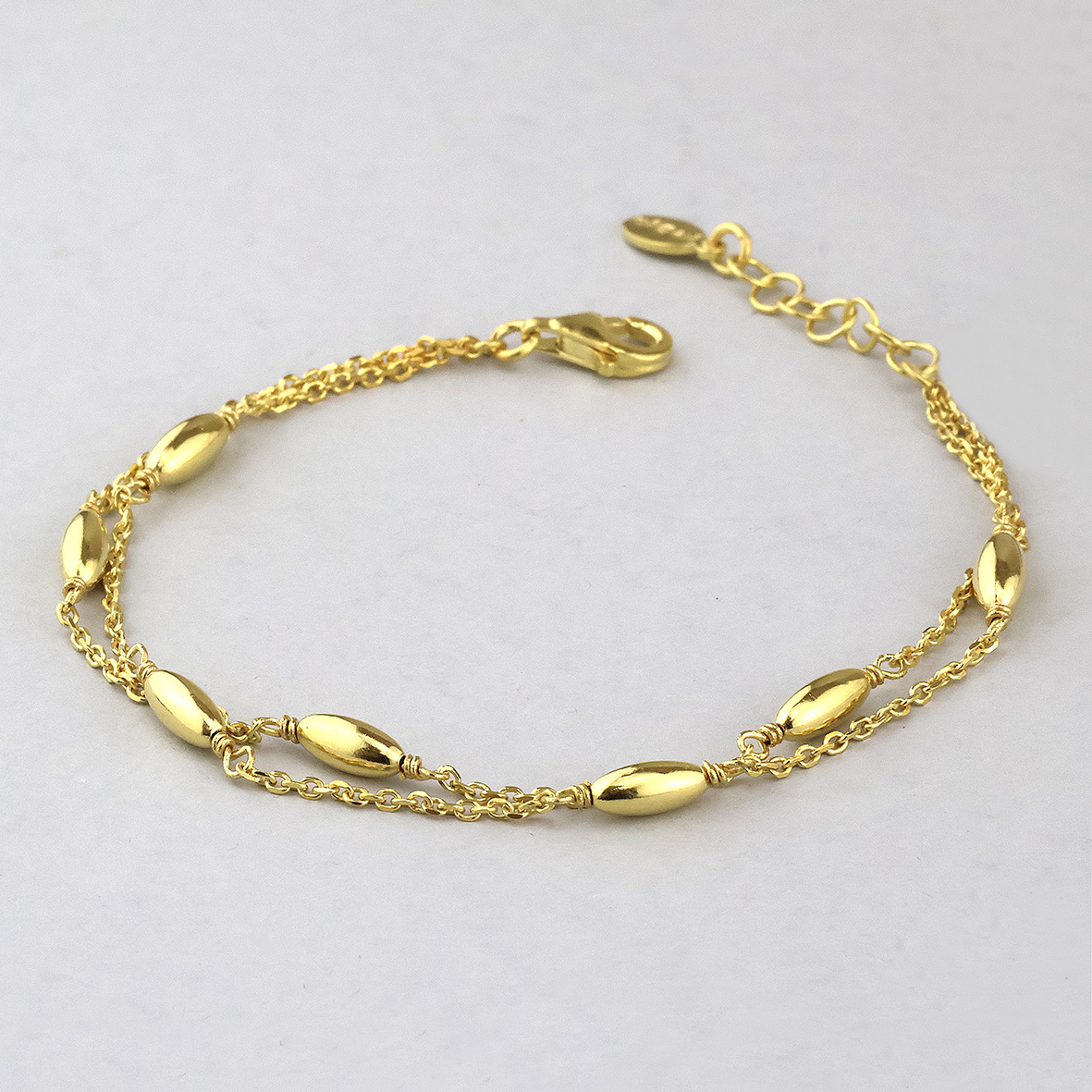 Avoid contact with perfumes, creams and water when possible to protect the plating on the jewelry. Gold plated jewelry should be gently cleaned with a soft polishing cloth.