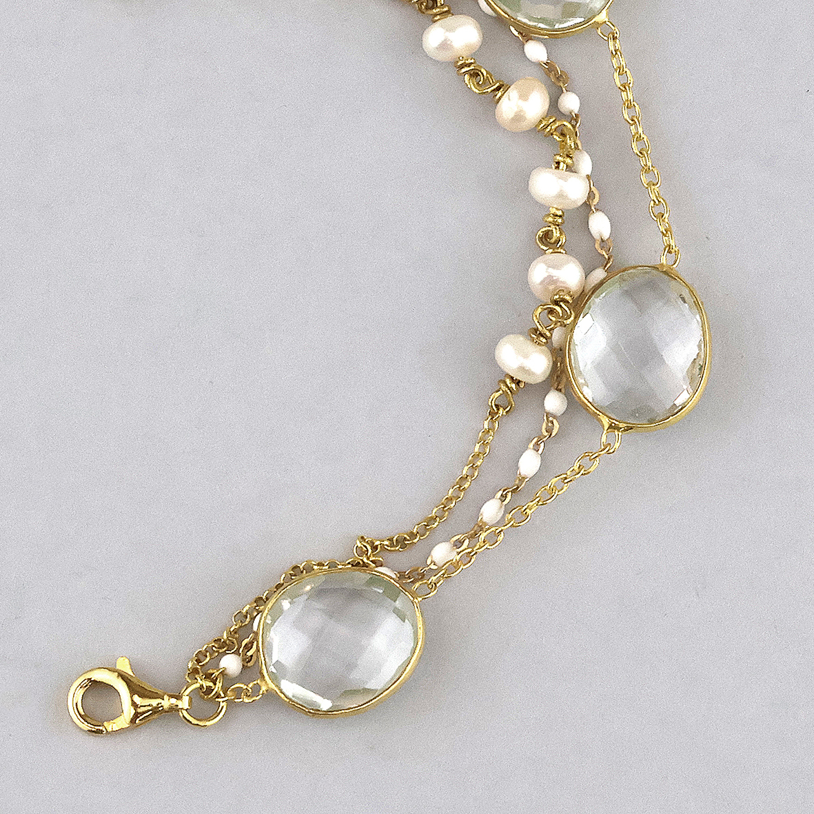 Avoid contact with perfumes, creams and water when possible to protect the plating on the jewelry. Gold plated jewelry should be gently cleaned with a soft polishing cloth.