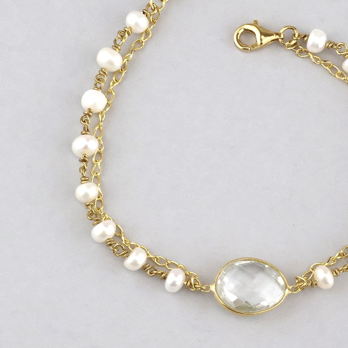 Avoid contact with perfumes, creams and water when possible to protect the plating on the jewelry. Gold plated jewelry should be gently cleaned with a soft polishing cloth.