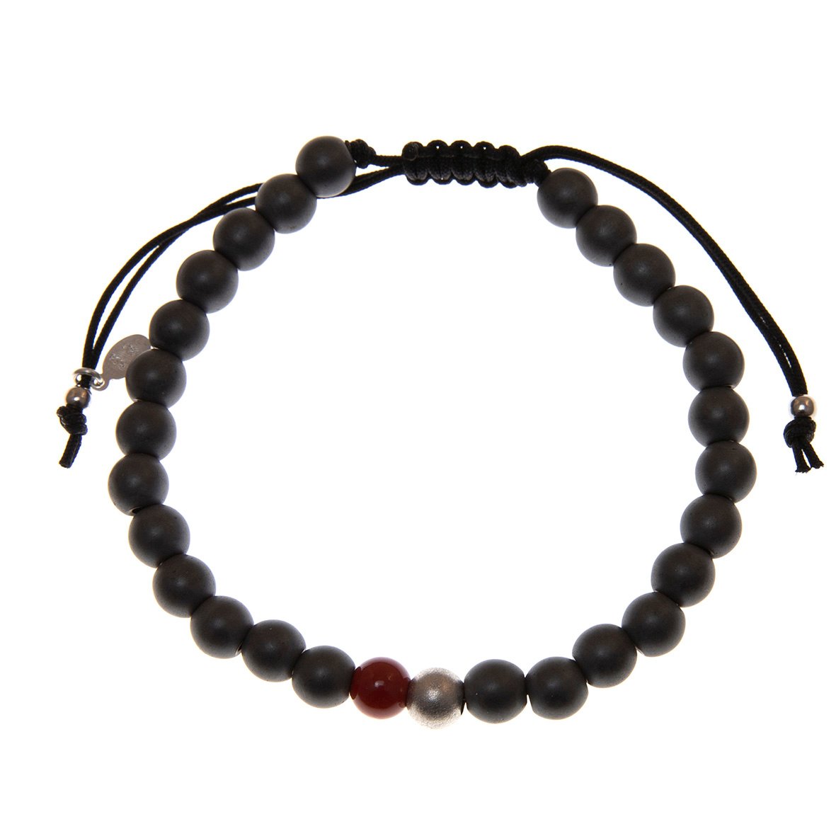 Cord bracelet in silver 925 rhodium plated with hematite