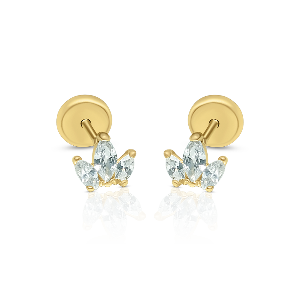 Earring yellow gold K14 with zirconia