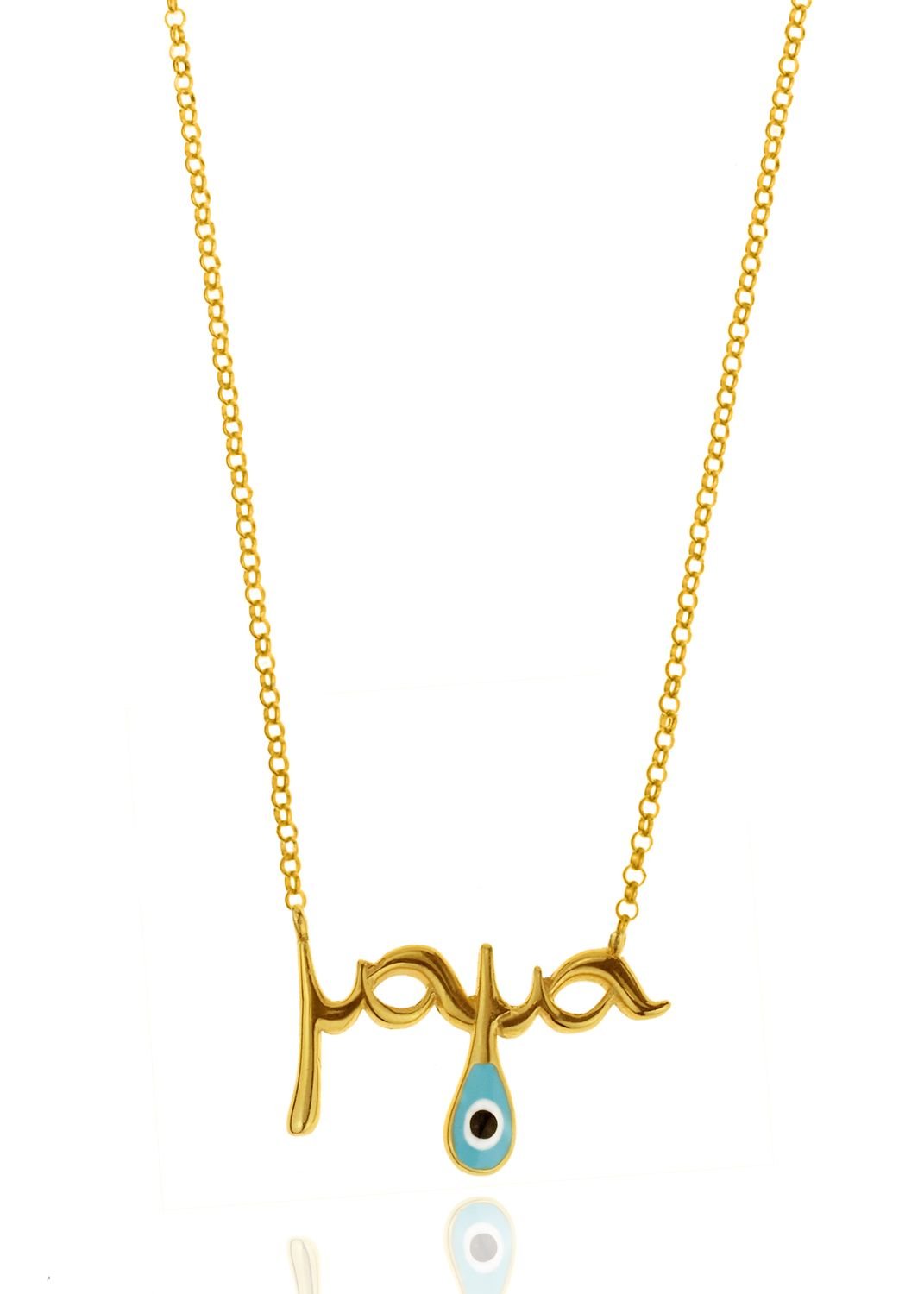 Necklace silver 925 "mama" yellow gold plated with enamel evil-eye