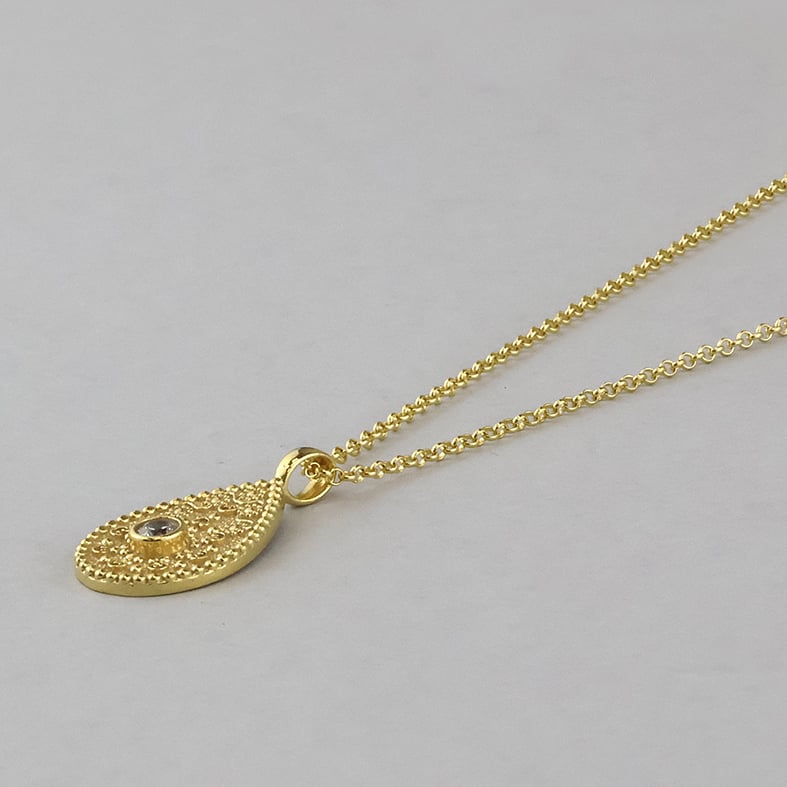 Avoid contact with perfumes, creams and water when possible to protect the plating on the jewelry. Gold plated jewelry should be gently cleaned with a soft polishing cloth.
