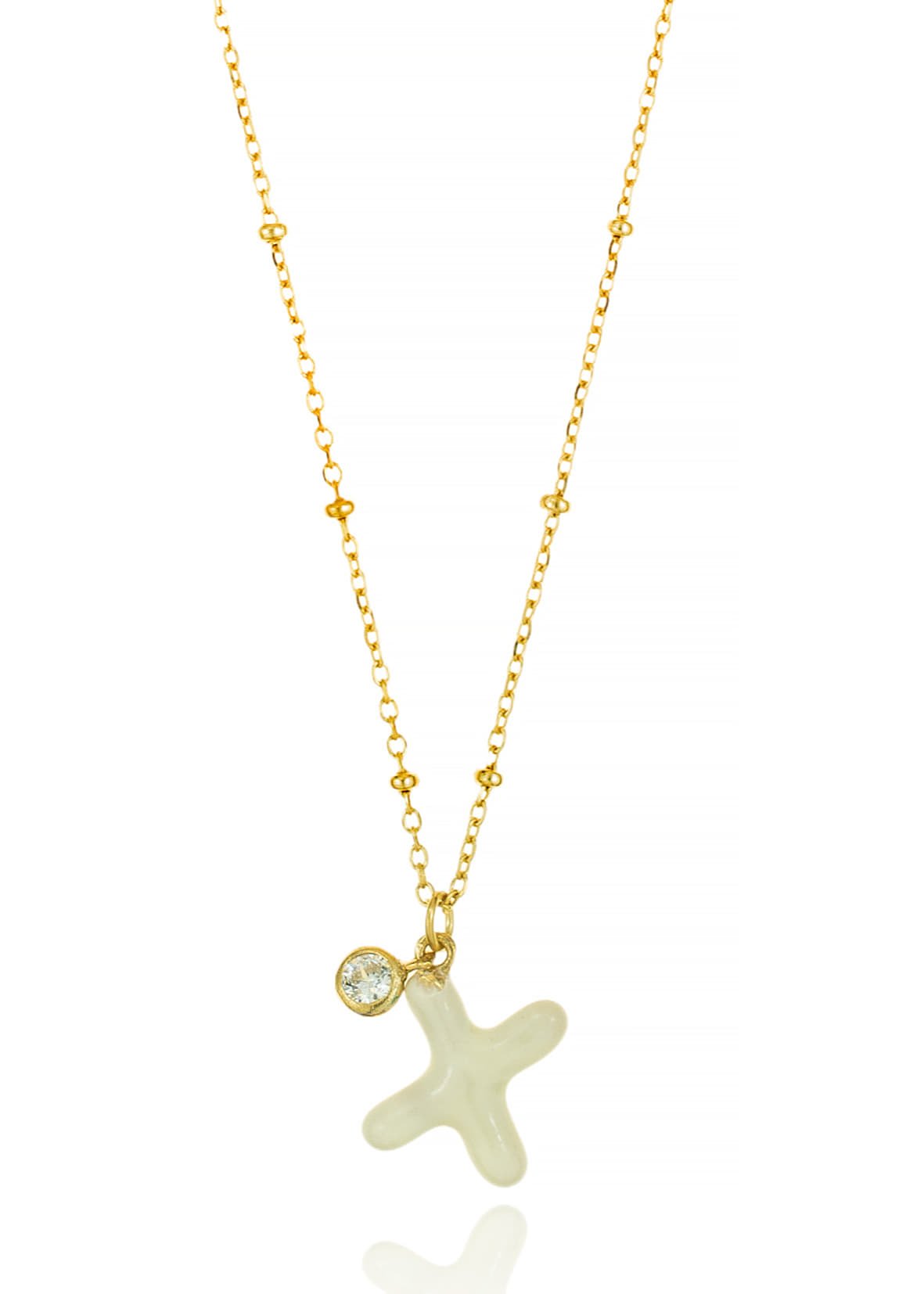 Avoid contact with perfumes, creams and water when possible to protect the plating on the jewelry. Gold plated jewelry should be gently cleaned with a soft polishing cloth.