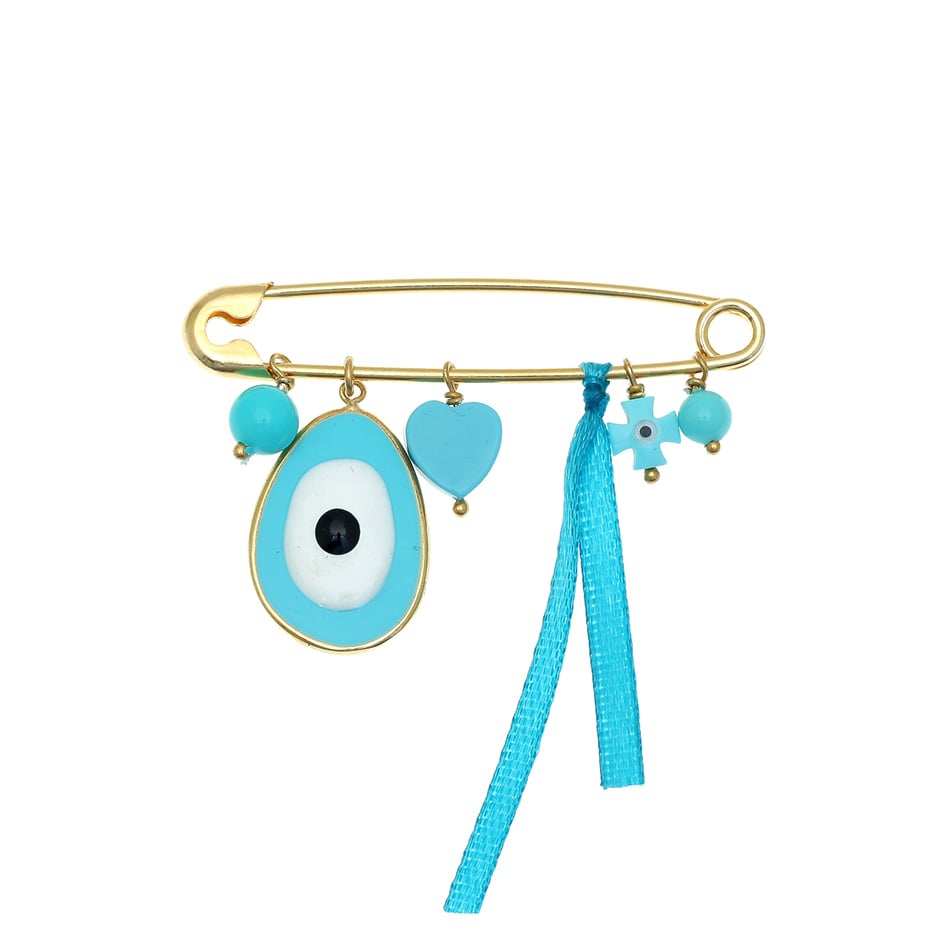 Pin in silver 925 gold plated with hanging charms