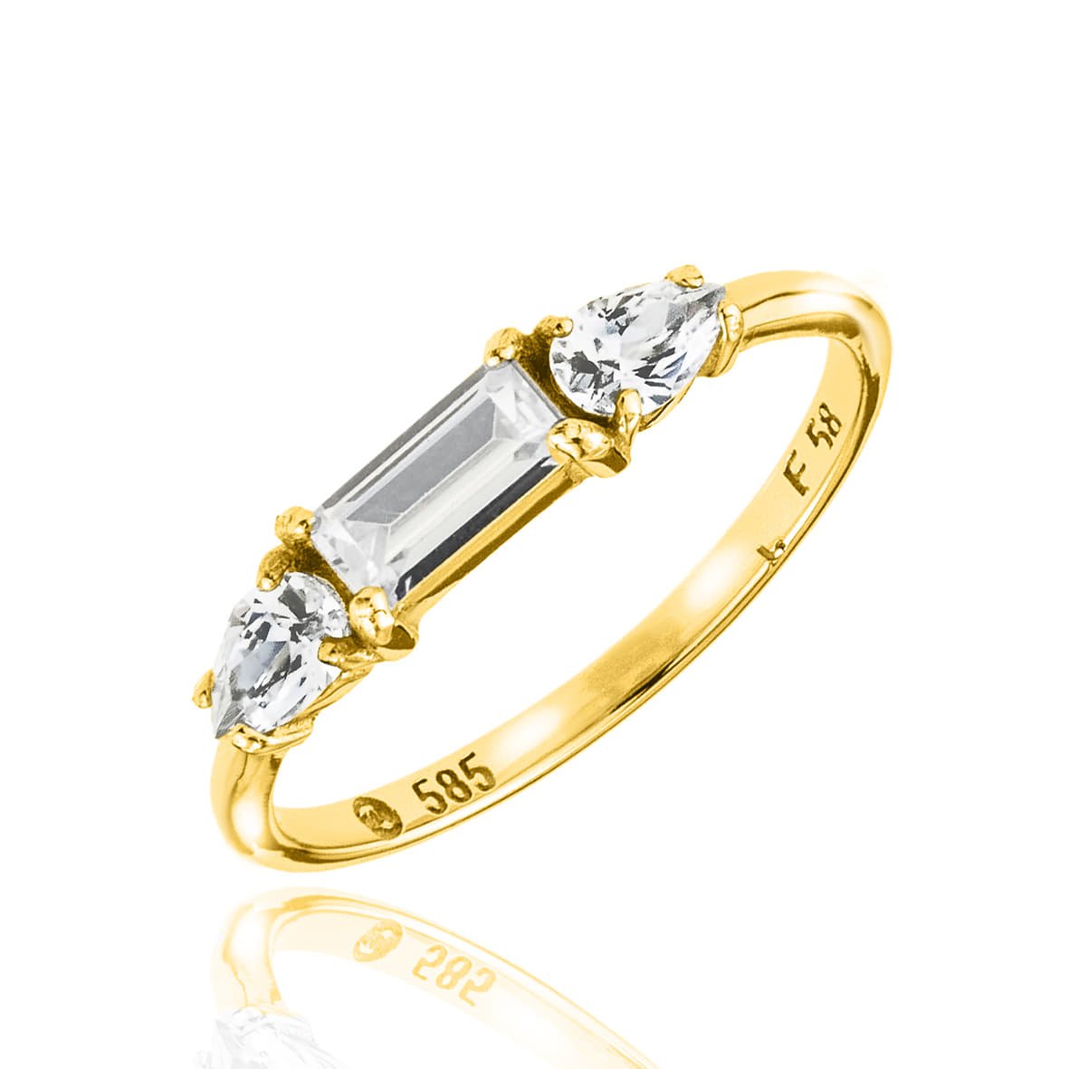 Ring yellow gold K14 with zirconia