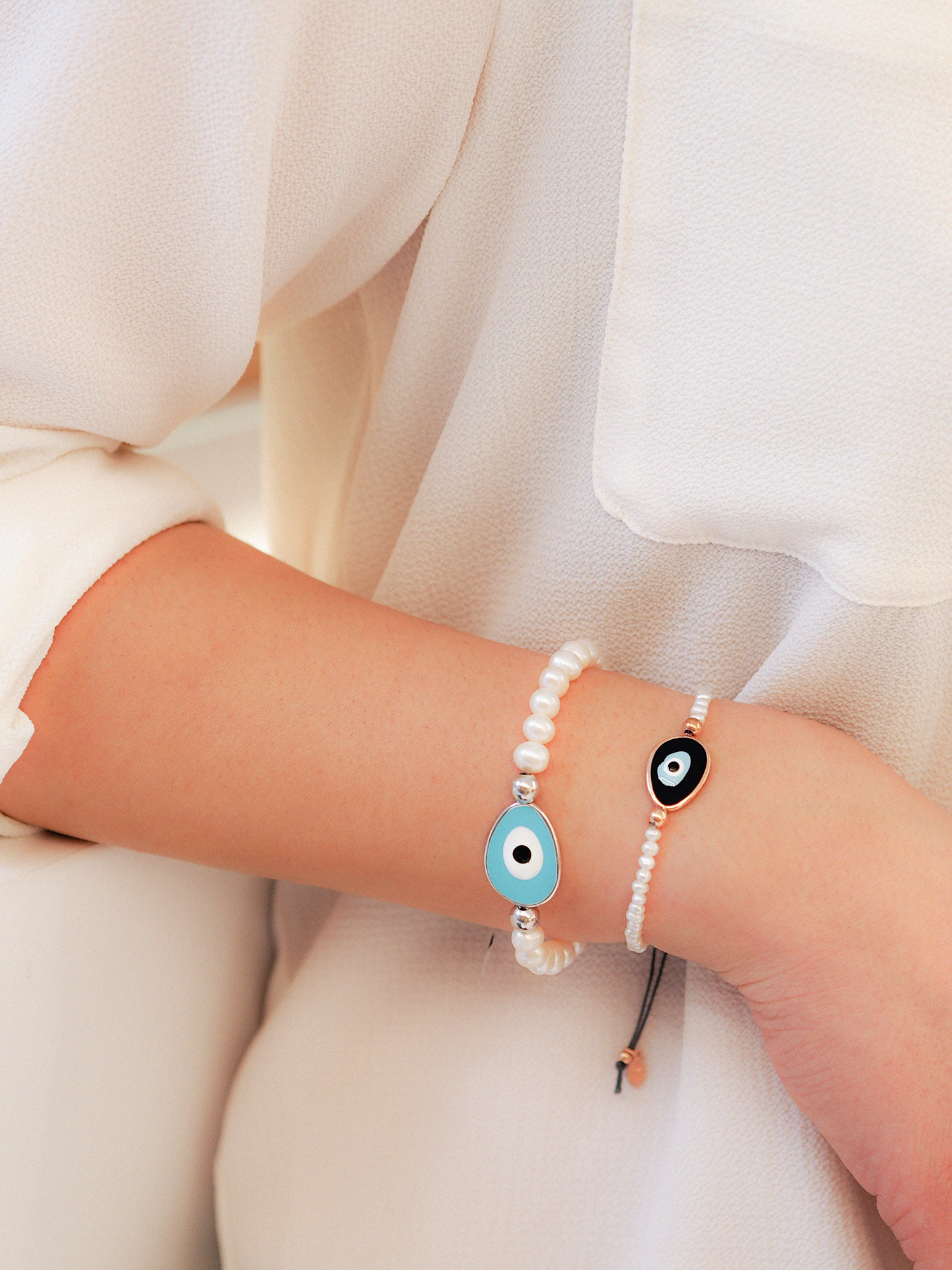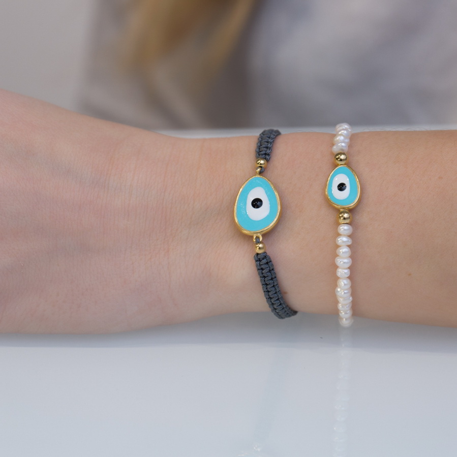 Βραχιόλι ασήμι 925 με επιχρύσωση, με χειροποίητο μάτι από σμάλτο και κορδόνι