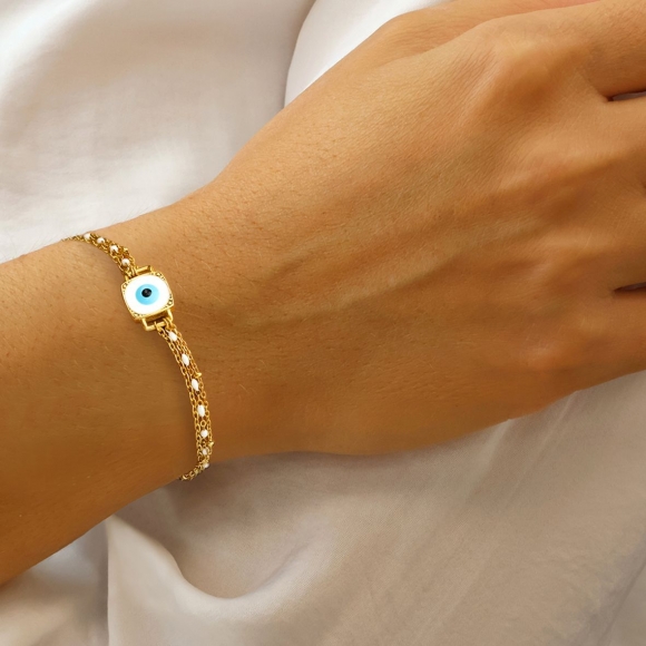 Βραχιόλι ασήμι 925 επιχρυσωμένο με ματάκι από σμάλτο
