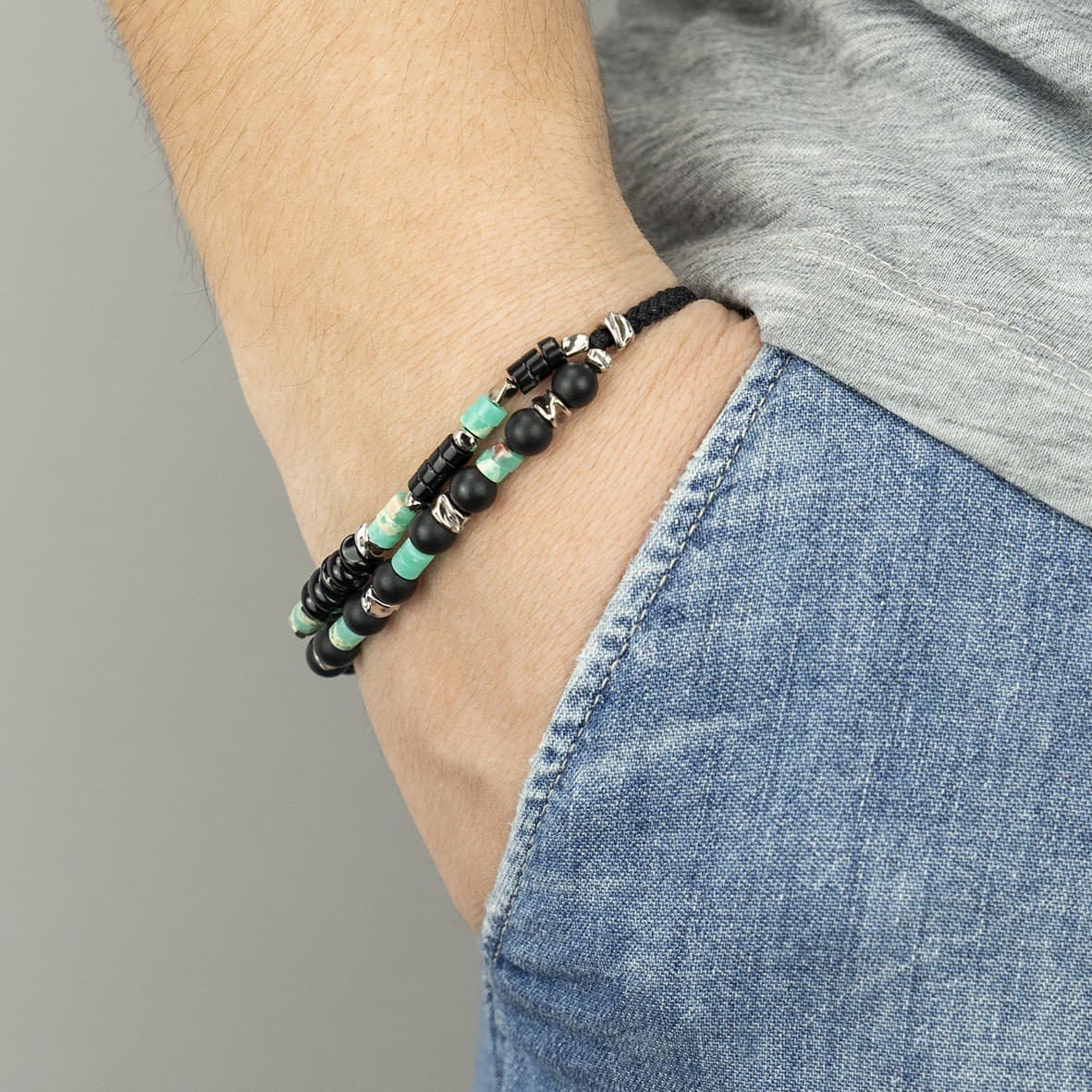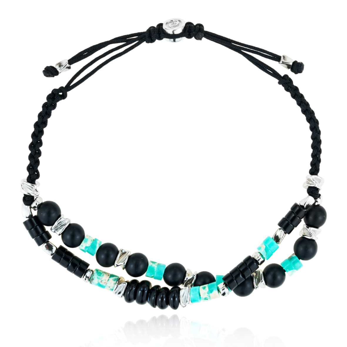 • Βραχιόλι ασήμι 925 επιπλατινωμένο με όνυχα και κορδόνι