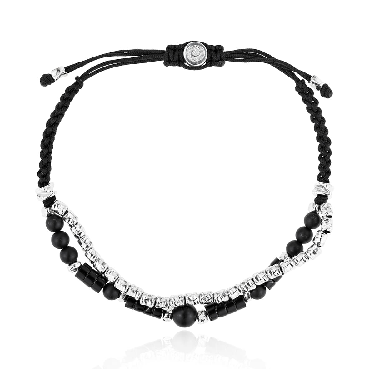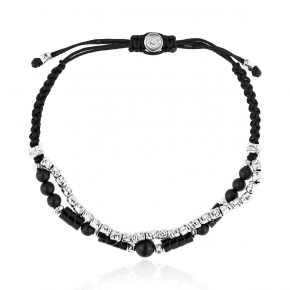 Βραχιόλι ασήμι 925 επιπλατινωμένο με όνυχα και κορδόνι