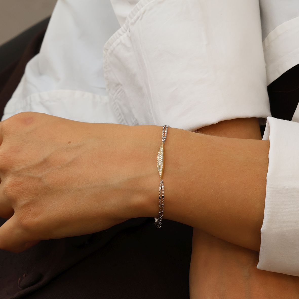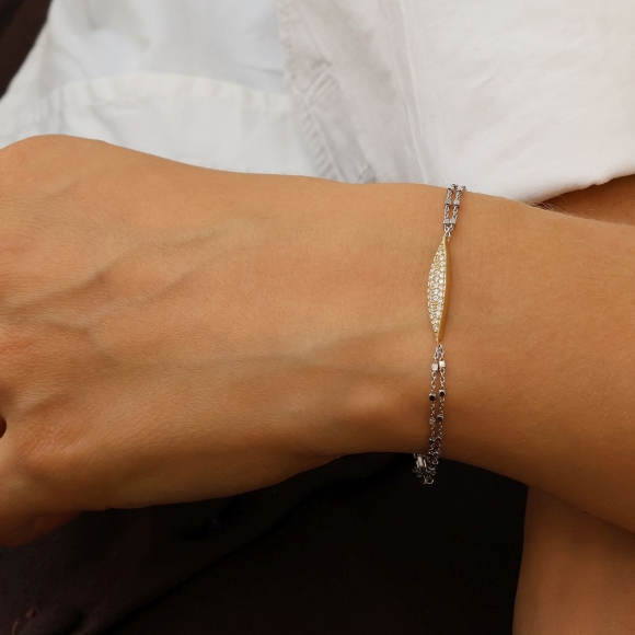 Βραχιόλι από ασήμι 925 και χρύσο Κ14 με zirconia