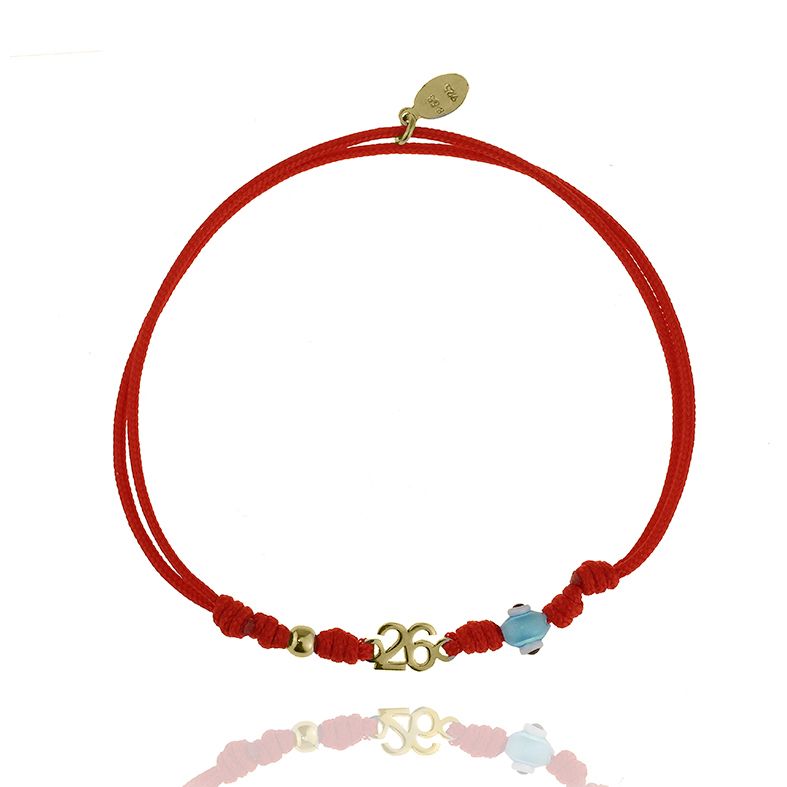 • Βραχιόλι ασήμι 925 γούρι επιχρυσωμένο 2026 με κορδόνι