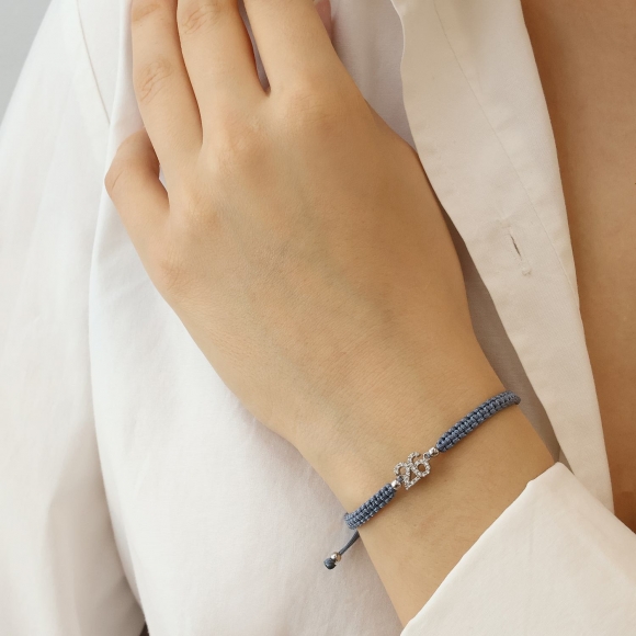 Βραχιόλι ασήμι 925 γούρι επιπλατινωμένο 2026 με κορδόνι και zirconia
