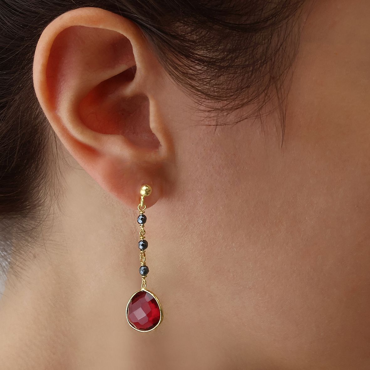 • Σκουλαρίκια ασήμι 925 επιχρυσωμένα με pink tourmaline και αιματίτη