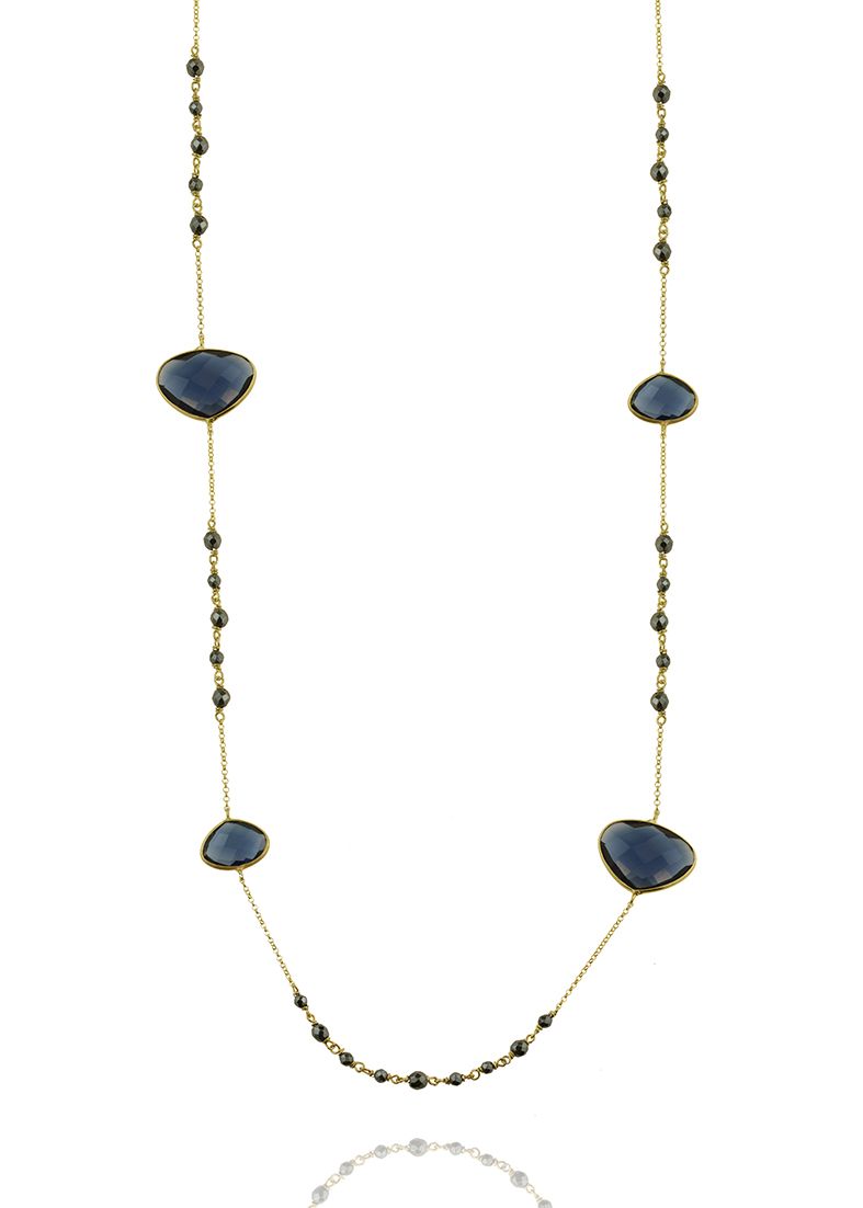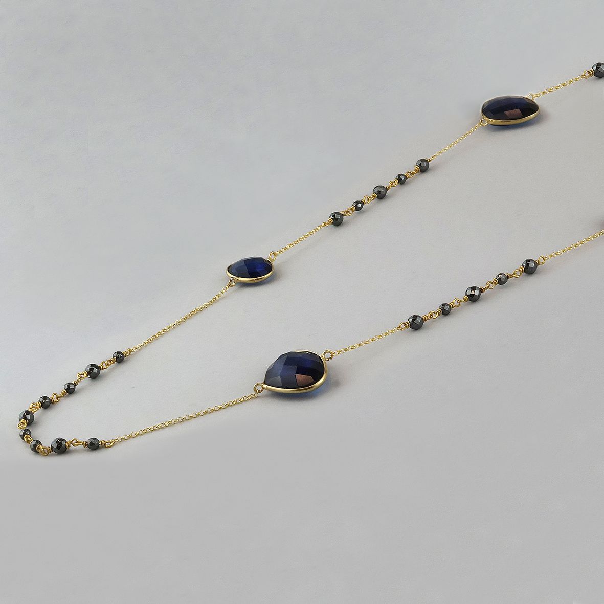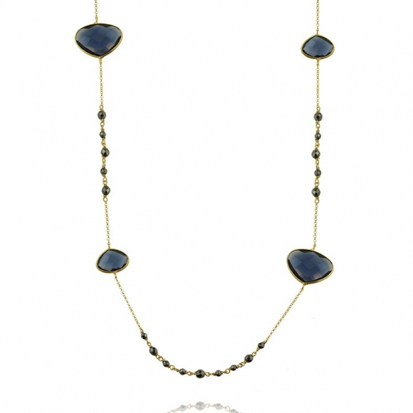 Κολιέ ασήμι 925 επιχρυσωμένο με kyanite quartz και αιματίτη