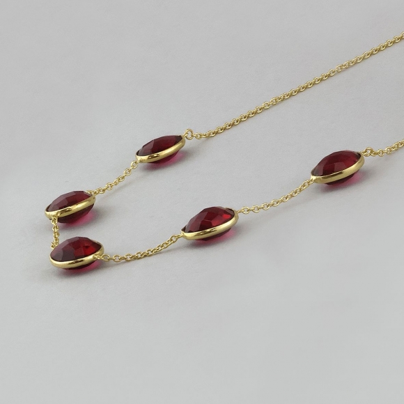 Κολιέ ασήμι 925 επιχρυσωμένο με pink tourmaline και αιματίτη