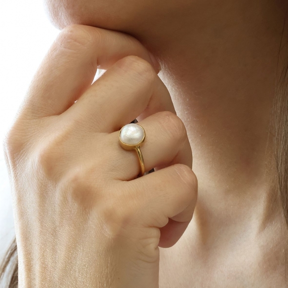Δαχτυλίδι ασήμι 925 επιχρυσωμένο με fresh water pearl