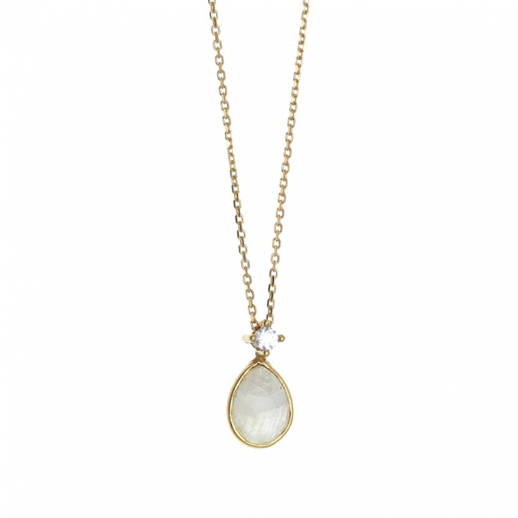 Κολιέ ασήμι 925 επιχρύσωμενο με φεγγαρόπετρα και λευκά zirconia