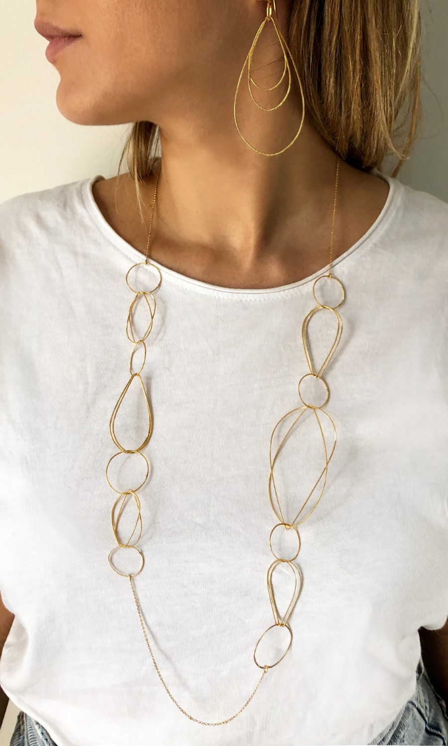 Σκουλαρίκια ασήμι 925 επίχρυσα (8 εκ μήκος, 6 εκ x 4 εκ η σταγόνα)