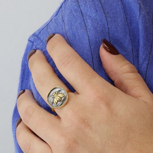 Δαχτυλίδι ασήμι 925 επιχρυσωμένο με μαύρη επιροδίωση