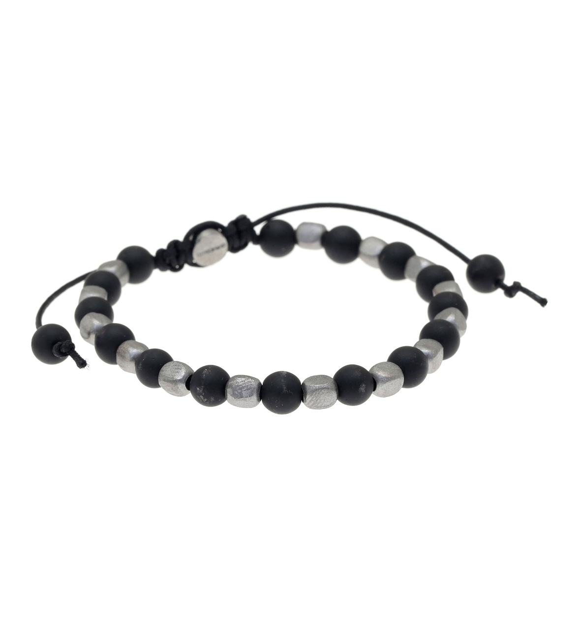 Βραχιόλι με κορδόνι ασήμι 925 με μαύρη επιροδίωση και όνυχα