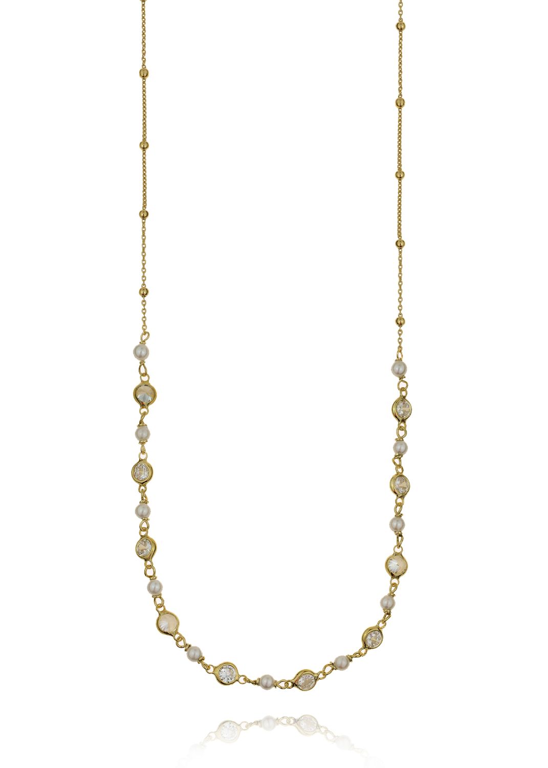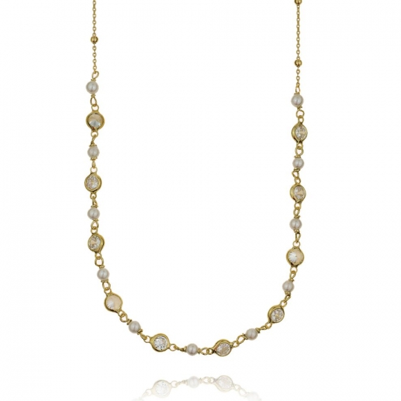 Κολιέ ασήμι 925 επιχρυσωμένο με zirconia και fresh water pearls