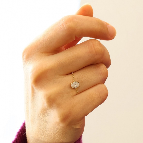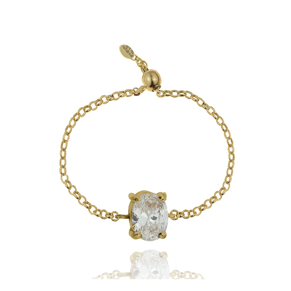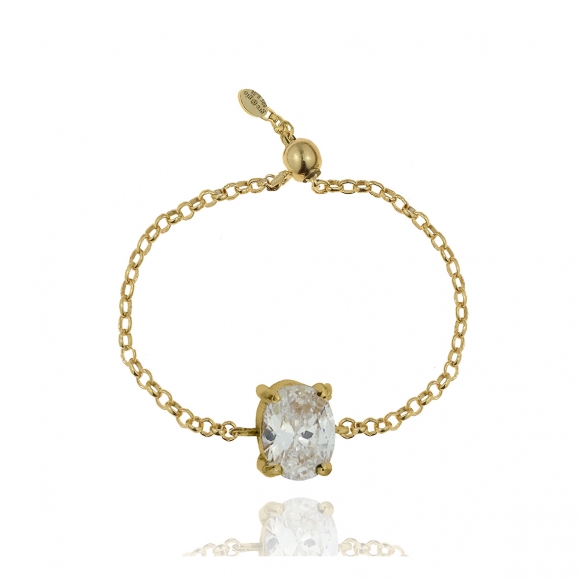 • Δαχτυλίδι ασήμι 925 επιχρυσωμένο με zirconia (με αλυσίδα που αυξομειώνεται)