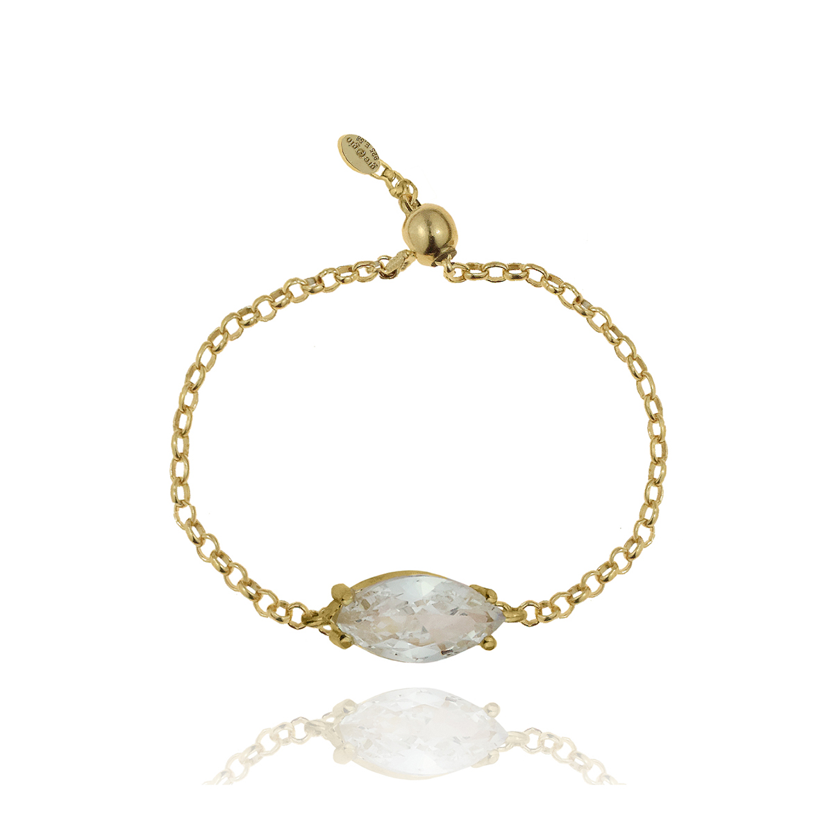 Δαχτυλίδι ασήμι 925 επιχρυσωμένο με zirconia (με αλυσίδα που αυξομειώνεται)