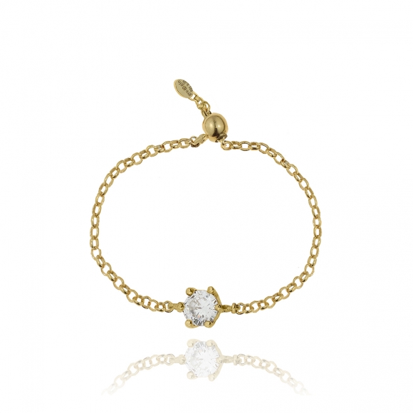 Δαχτυλίδι ασήμι 925 επιχρυσωμένο με zirconia (με αλυσίδα που αυξομειώνεται)