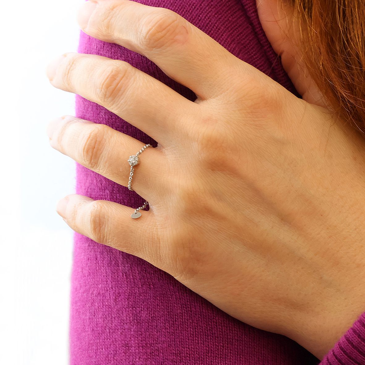 Δαχτυλίδι ασήμι 925 επιπλατινωμένο με zirconia (με αλυσίδα που αυξομειώνεται)