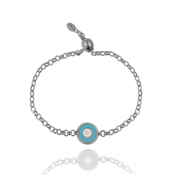• Δαχτυλίδι ασήμι 925 επιπλατινωμένο με μάτι από σμάλτο (με αλυσίδα που αυξομειώνεται)