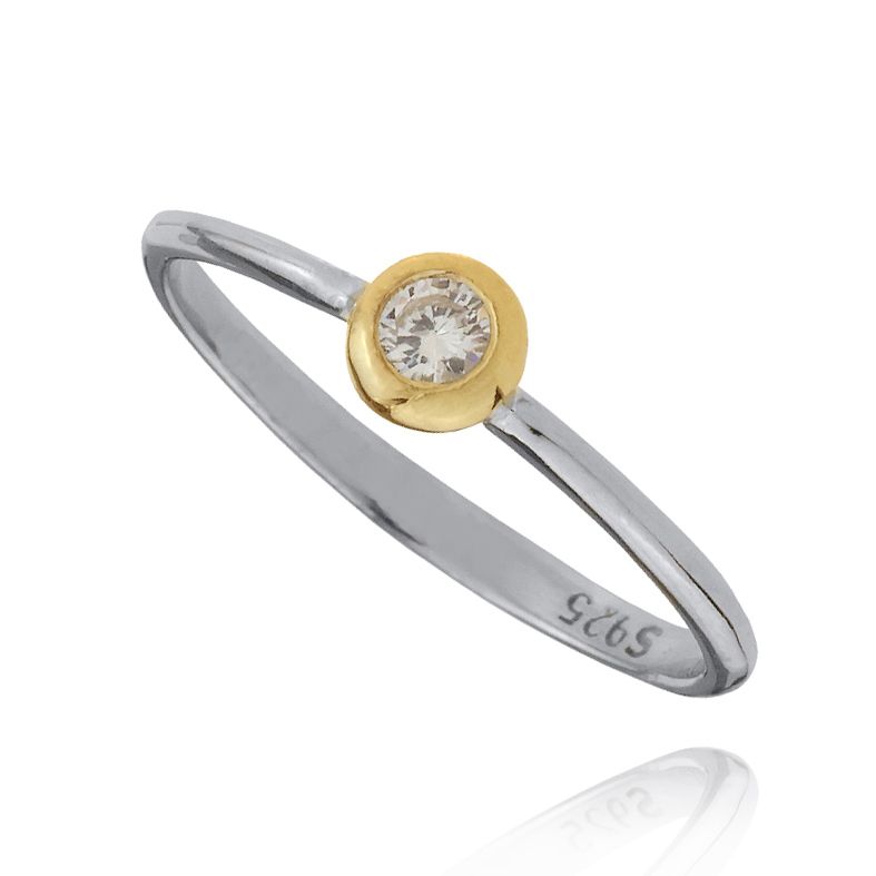 • Δαχτυλίδι από ασήμι 925 και χρύσο Κ14 με zirconia