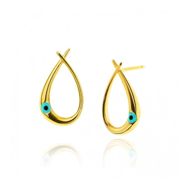 Σκουλαρίκια ασήμι 925 επιχρυσωμένα με ματάκι απο σμάλτο