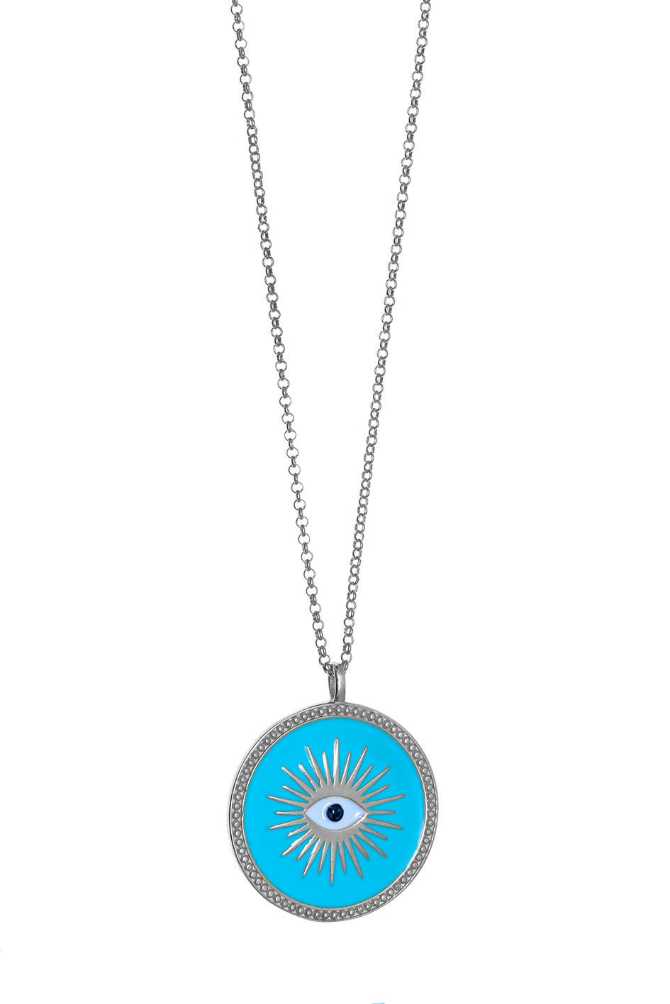 Κολιέ ασήμι 925 επιπλατινωμένο με χειροποίητο μάτι από σμάλτο