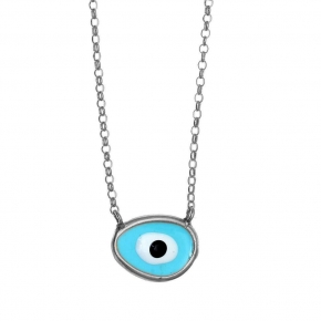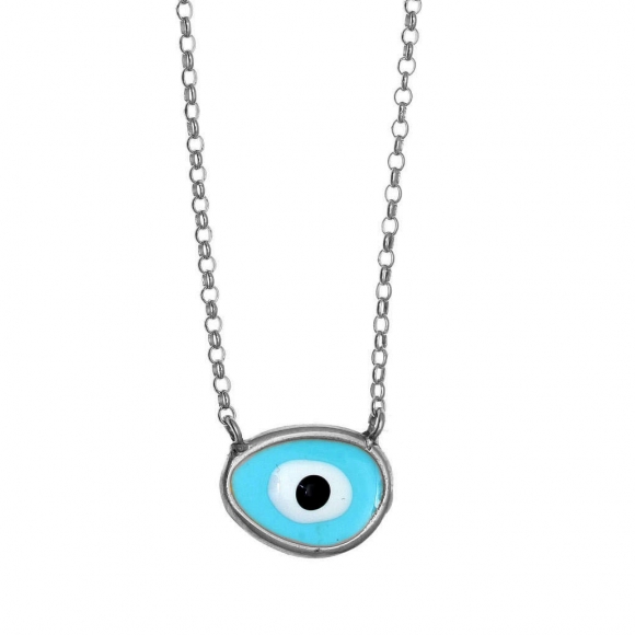 Κολιέ ασήμι 925 επιπλατινωμένο με χειροποίητο μάτι από σμάλτο