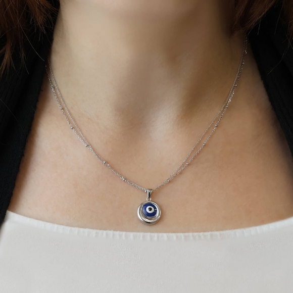 Κολιέ ασήμι 925 επιπλατινωμένο με μάτι απο σμάλτο