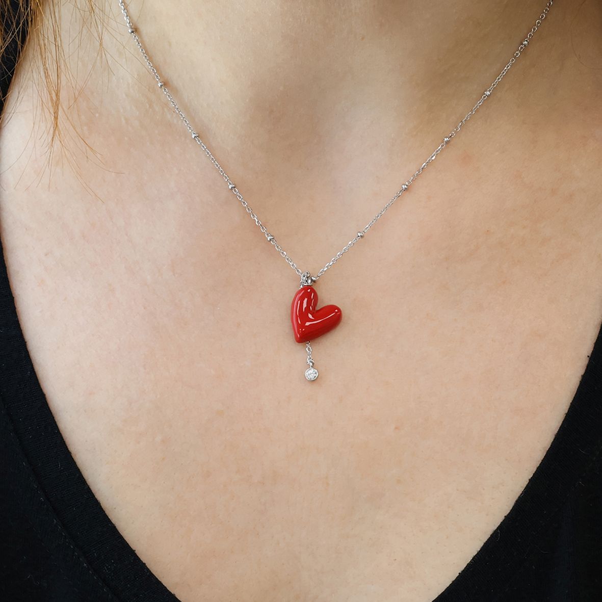 Κολιέ ασήμι 925 επιπλατινωμένο με σμάλτο και zirconia