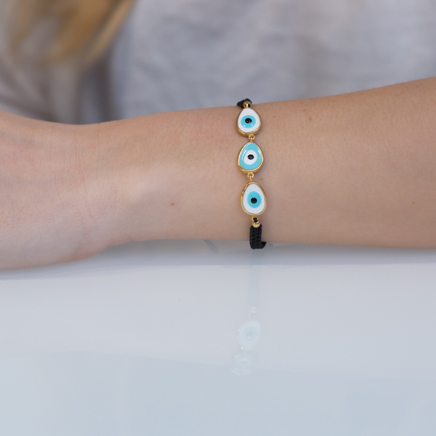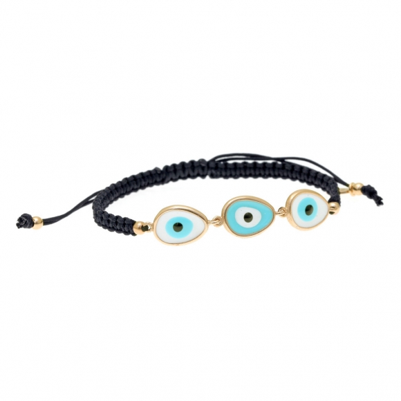 Βραχιόλι ασήμι 925 με επιχρύσωση & με χειροποίητο μάτι από σμάλτο και κορδόνι