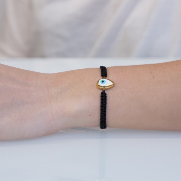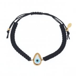 Βραχιόλι ασήμι 925 επιχρυσωμένο με κορδόνι και ματι απο σμάλτο (0.9cm x 1,3cm)