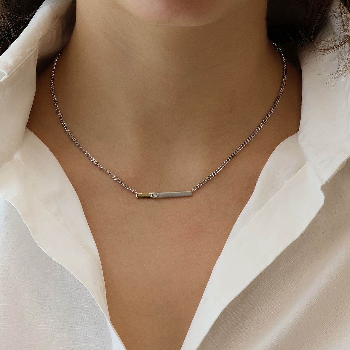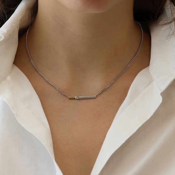 Κολιέ από ασήμι 925 και χρύσο Κ14 με zirconia