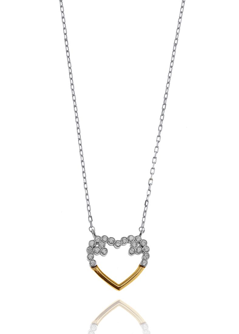 Κολιέ από ασήμι 925 και χρύσο Κ14 με zirconia