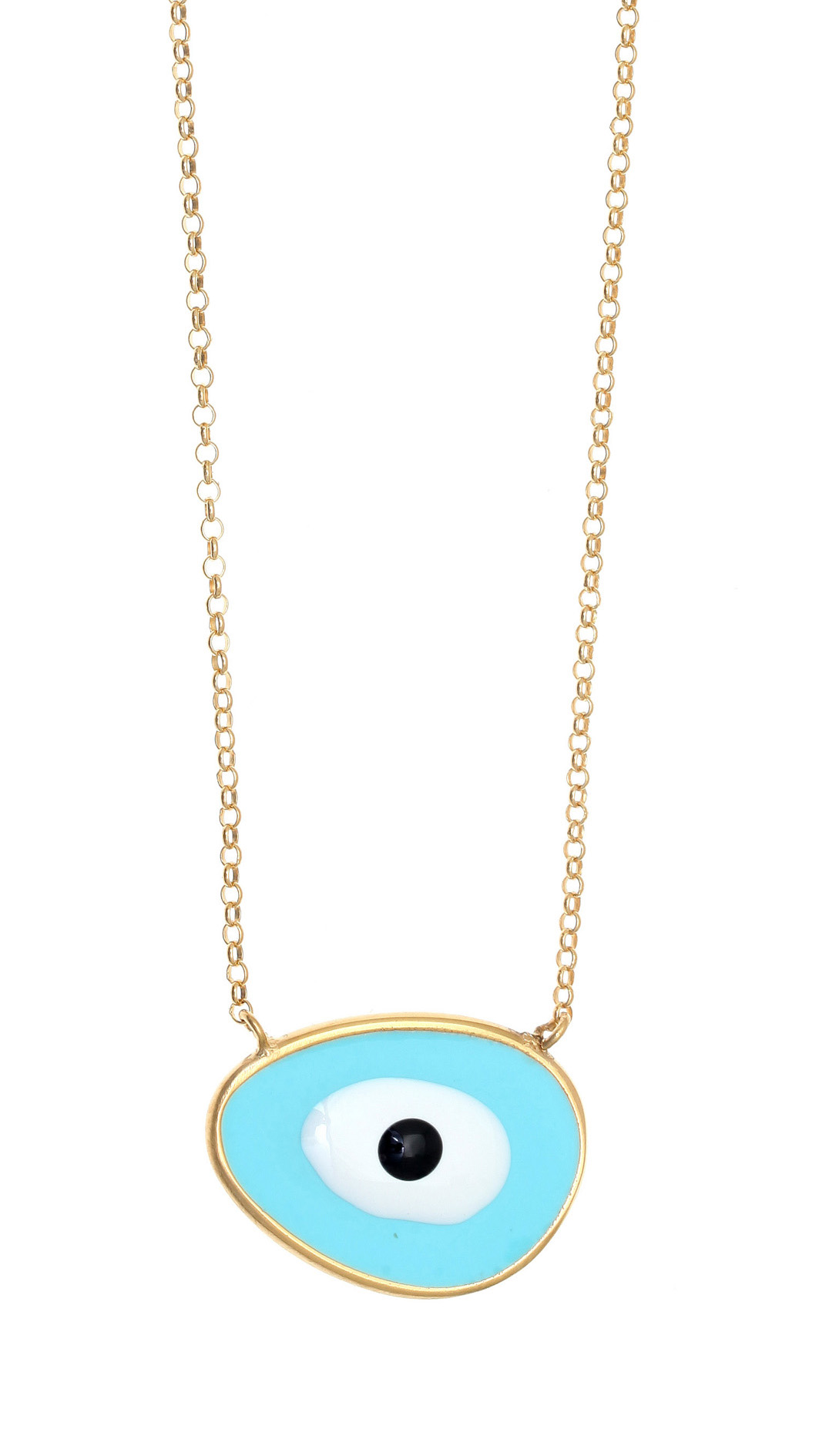 • Κολιέ ασήμι 925 με επιχρύσωση & με χειροποίητο μάτι από σμάλτο