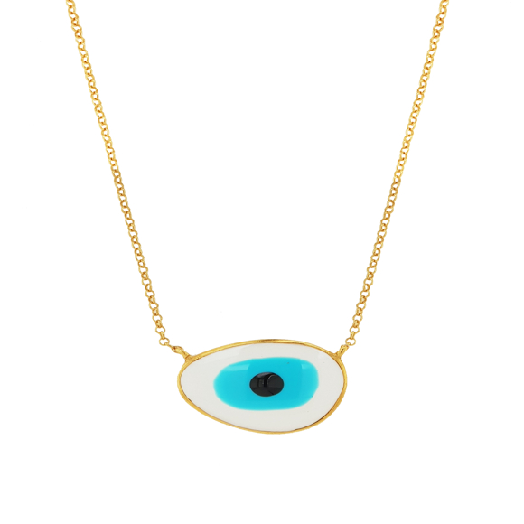 • Κολιέ ασήμι 925 επιχρυσωμένο με χειροποίητο μάτι από σμάλτο