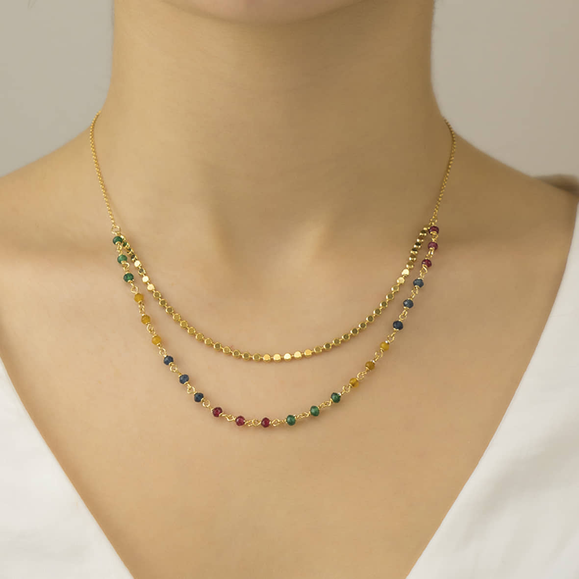 Κολιέ ασήμι 925 επιχρυσωμένο με χρωματιστές πέτρες