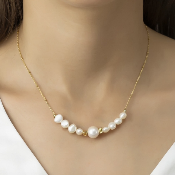 Κολιέ ασήμι 925 επιχρυσωμένο με μαργαριτάρι