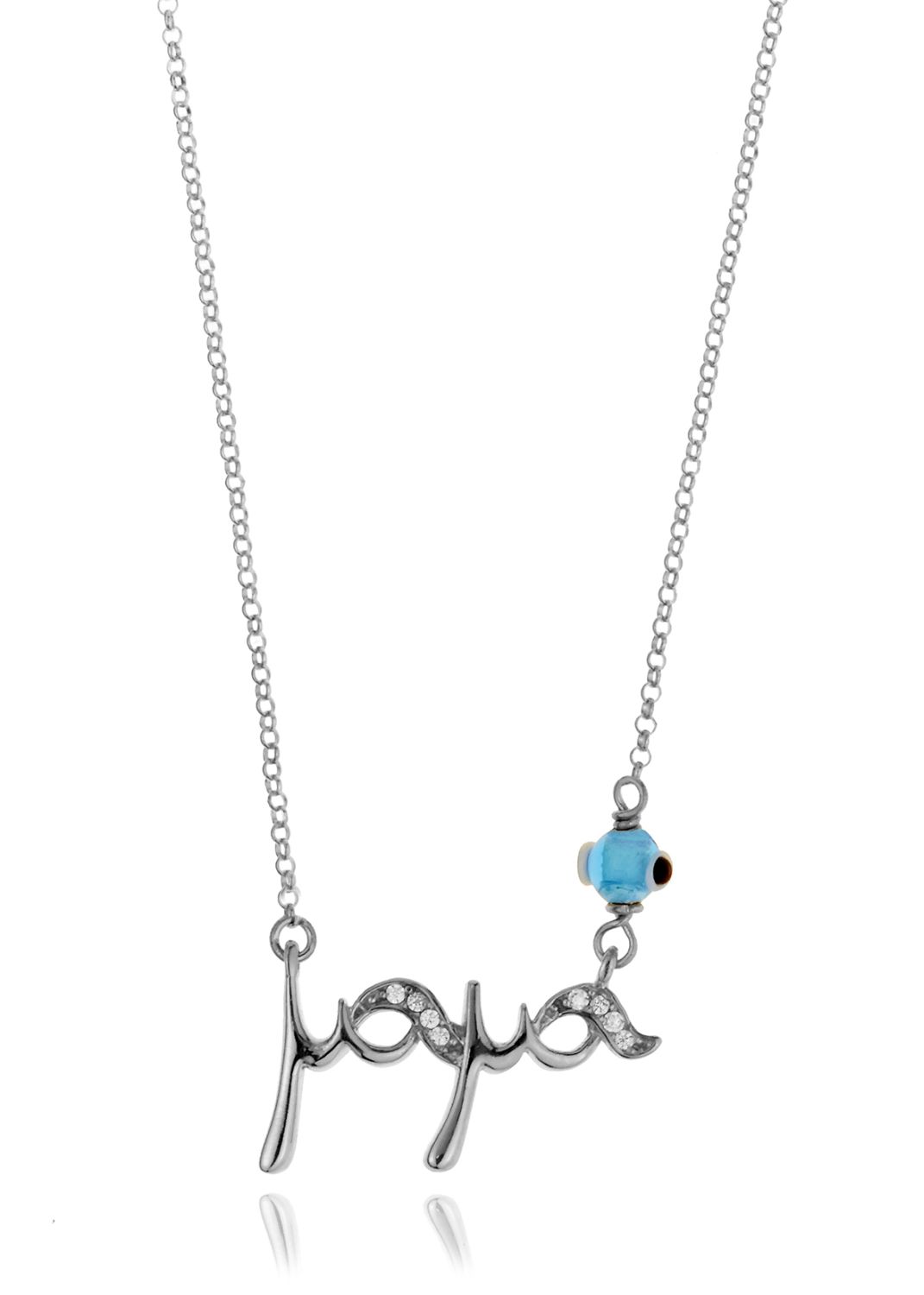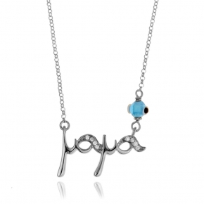 Κολιέ ασήμι 925 επιπλατινωμένο 'μαμα' με ματάκι