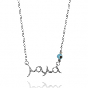 Κολιέ ασήμι 925 επιπλατινωμένο 'μαμα' με ματάκι